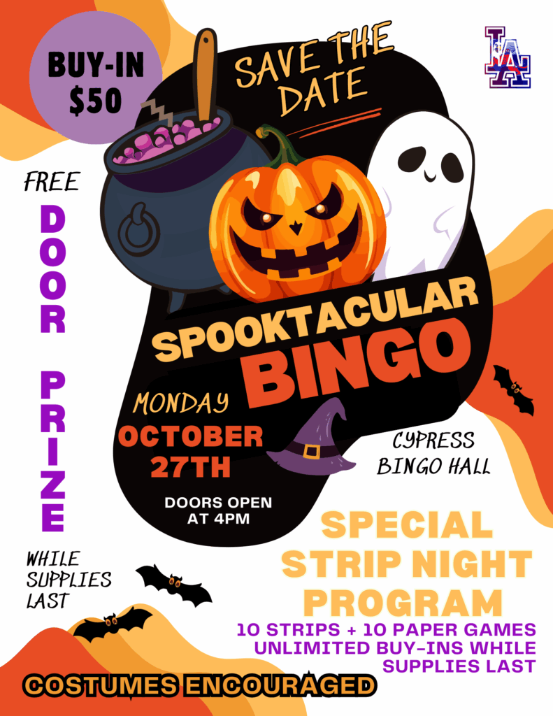 JOIN US FOR OUR SPOOKTACULAR BINGO BASH ON MONDAY, OCT.27th